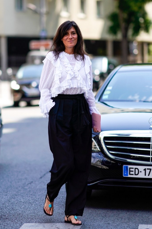 О том, красиво ли это или нет — каждый судит исходя из своих предпочтений. От себя могу сказать, что у высокой талии есть два несомненных плюса. Первый — при хорошей посадке это самые удобные брюки для тех, у кого есть перепад между талией и бедрами. Да, иногда приходит такие брюки подгонять или вообще шить на заказ. Но результат того стоит. А второй плюс — такие брюки очень хорошо помогают выстроить пропорции девушкам невысокого роста. О том, как выстраивать пропорции и «удлинять ноги» я писала в отдельной статье «Как одеваться невысоким девушкам«. А пока просто покажу вам подборку удачных идей с такими брюками.