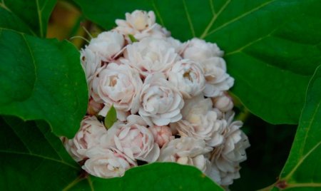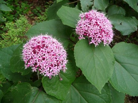 Клеродендрум филиппинский — полукустарник, одет в бархатистые, тёмно-зелёные листья, шарообразные соцветия состоят из цветков, напоминающих нежные розочки и источающих жасминовый аромат.