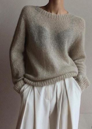 Свитера и свитшоты должны быть мягкими, интересной фактурой. Либо идеальная гладкость, либо объемная выразительная вязка. Хорошо, когда такая вещь подходит и чтобы заправлять, и чтобы носить навыпуск.