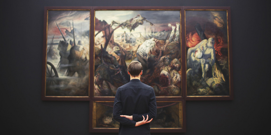 На фото: Перед триптихом Отто Дикса “Война” (1932). Галерея новых мастеров, Дрезден