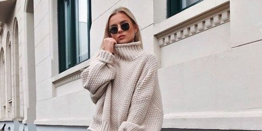В тренде укороченные модели свитеров. Они не обязательно должны быть в облипку. Это вполне может быть и оверсайз, который заканчивается где-то чуть ниже ребер. Носим с брюками и джинсами, у которых высокая талия.
