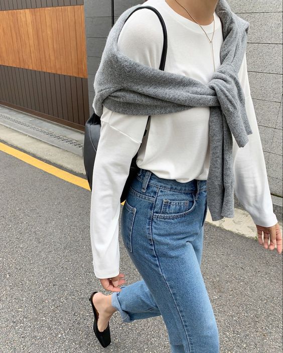 Отличный вариант для изменчивой погоды — свитер, повязанный на плечах или через плечо. В таком виде он заменяет собой фактурный шарф. А если станет холоднее — его можно просто надеть на себя.