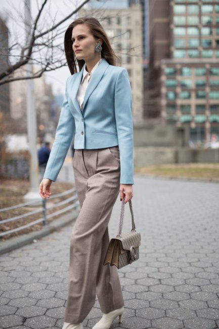 Весной светло-голубой цвет потеснил любимые всеми millennial pink и пастельно-лиловый. В теплое время года освежающий оттенок голубого латте выглядит органично на фоне неба или розового заката. На Неделе моды в Нью-Йорке с лазурным цветом экспериментировали Victoria Beckham, Ralph Lauren, Alexander Wang и звезды streetsyle-хроники.