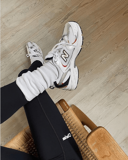 Интересное и очень смелое решение — высокие спортивные носки, в которые заправлены леггинсы. Идея не только для спортивного стиля. Впишется в любой casual образ, если взять не такие лайкровые леггинсы, а что-то менее похожее на тренировочную форму. Я видела вариант, когда в такие носки были заправлены даже джинсы. Экспериментируйте.