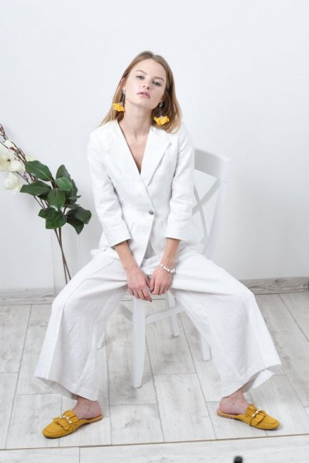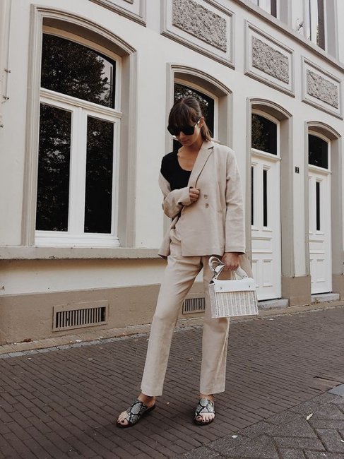 Лен — это тот материал, из которого костюм с шортами будет смотреться наиболее органично и естественно. Вы можете выбрать более четкие линии для тщательного образа, или мягкость и «мятость» для небрежного.