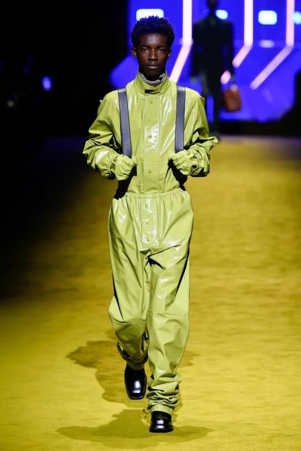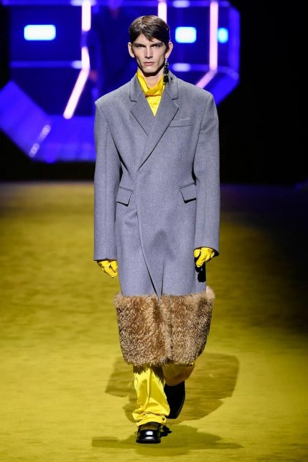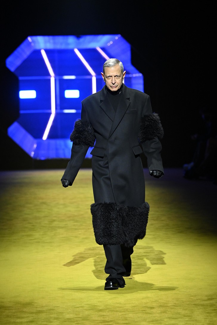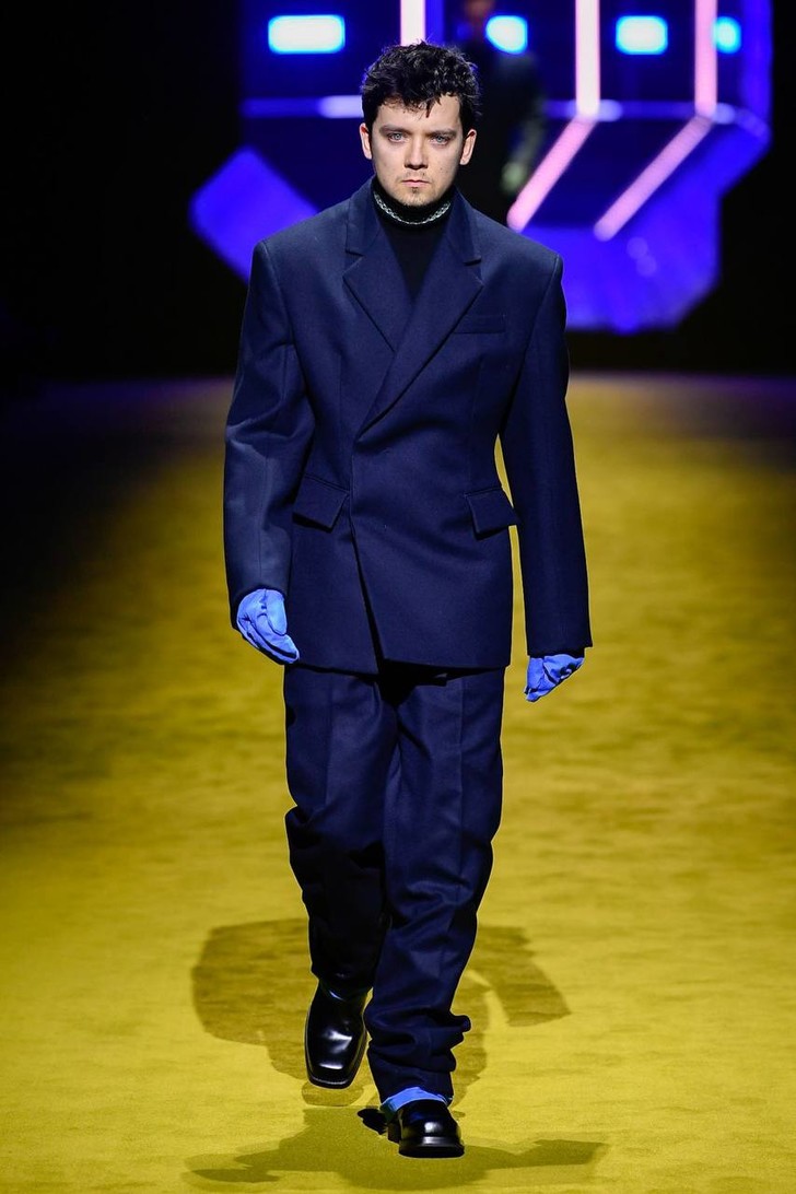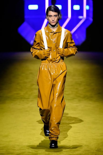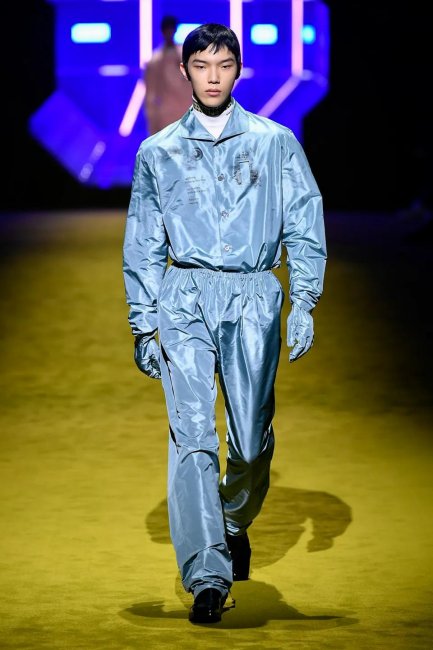Буквально несколько минут назад в Милане завершился показ новой мужской коллекции Prada, созданной под руководством Миуччи Прада и Рафа Симонса. В этом сезоне дизайнерский дуэт решил привлечь к шоу не только ведущих моделей, но и звезд киноиндустрии: так, первым на подиум вышел Кайл Маклахлен в потрясающем черном пальто и дутых брюках, а за ним — Эйса Баттерфилд, Томас Сэнгстер и Джефф Голдблюм. Звездный десант в прямом и переносном смысле — декорации, а также сами образы отсылали к моде будущего, картине Кубрика «Космическая одиссея», фильму «Гаттака» Эндрю Никола и «Солярису» Тарковского.