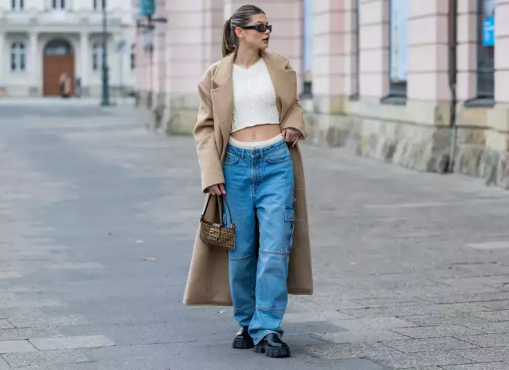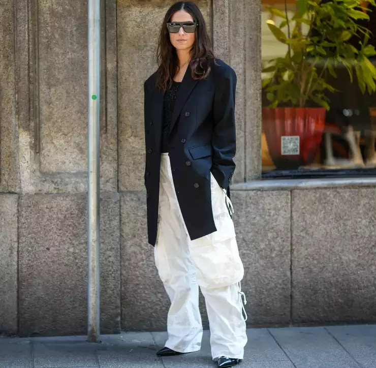 Независимо от того, любите ли вы тренчи или предпочитаете носить просторные пыльники, нельзя отрицать, что длинное пальто в паре с широкими удобными штанами — это золотой стандарт стрит-моды. «Накиньте гладкое пальто в пол поверх карго аналогичного оттенка — невероятно стильно», — уверяет Алина.