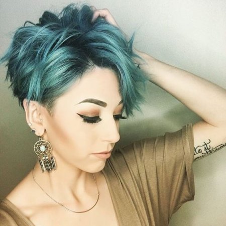 Розовый, фиолетовый, «бургунди», голубой или бирюзовый – все эти цвета будут отлично смотреться на коротких волосах. Если покрасить всю длину ты не готова, сделай яркие пряди. Это тоже будет выглядеть достаточно стильно.