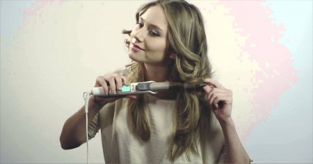 Далее, суши волосы феном. Главное, не вытягивай их, а сохрани естественную структуру. После, выбери необходимый диаметр плойки и накрути волосы. Помни, пока локоны будут горячими, их нужно заколоть при помощи зажимов. Распустить можно после полного остывания волос.