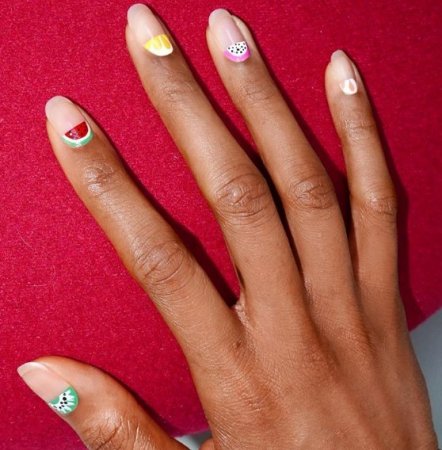Мы привыкли закрашивать верхнюю часть ногтя, называя методику французским маникюром, а как насчет нижней? Такой вариант маникюра на все 100% напоминает о жарком лете и сочных фруктах. Не знаю как ты, но когда я думаю о лете – настроение улучшается.