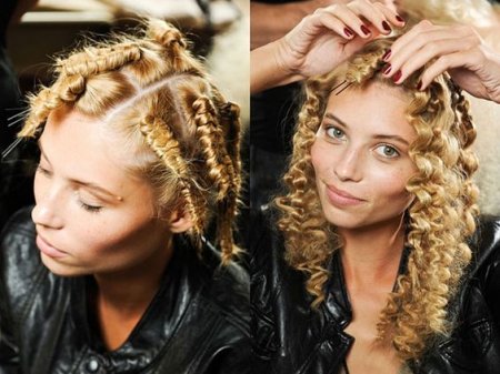 Если хочешь получить более плотные и озорные кудри, то с вечера из влажных волос сделай как можно больше самых обычных гулек. И скрепи их резинками.
