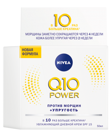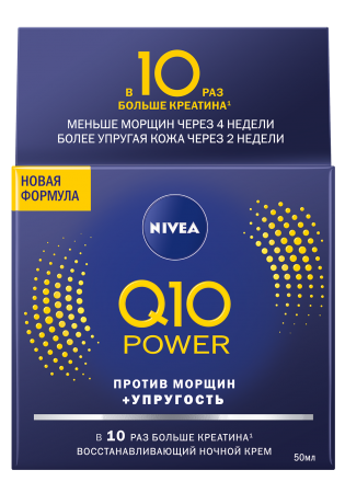 Так получилась обновленная формула NIVEA Q10 POWER, которая содержит Q10 и в 10 (!) раз больше Креатина по сравнению с предыдущей версией. Действие комплекса впечатляет: морщины заметно уменьшаются за 4 недели, а кожа становится более упругой уже через 2 недели регулярного использования.