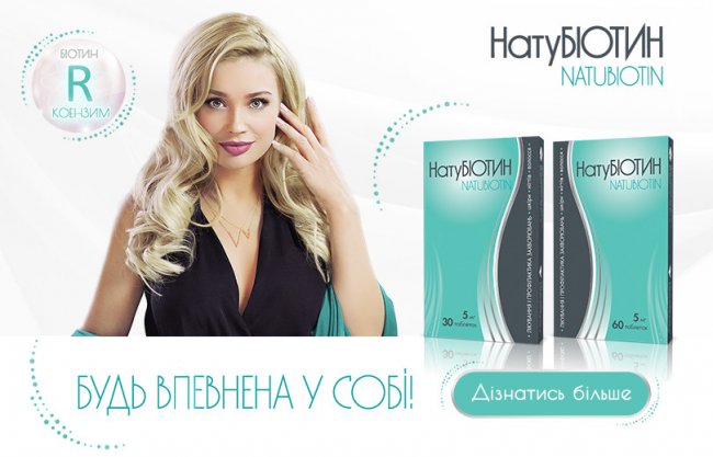 Реклама лікарського засобу. Перед застосуванням уважно ознайомитися з інструкцією та проконсультуйтесь з лікарем. Зберігати в недоступному для дітей місці. НатуБІОТИН: РП UA /1596/01/01 від 13.05.2017; Ексклюзивний дистриб'ютор: ПрАТ "Натурфарм", вул. Лісна, 30-А, м. Київ, Пуща-Водиця, 04075; телефон: (044) 401-81-03