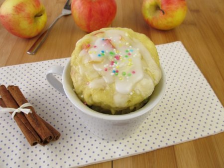 Яблочный кекс с корицейЯблоко и корица — это сочетание, которое теснее успело стать классическим. Кроме того, эти два продукта чрезвычайно полезны. Так что неустрашимо сочетайте их в роскошных десертах.Ингредиенты: 3 столовые ложки пытки; 1 столовая ложка сахара; 1/2 чайной ложки корицы; 1/8 чайной ложки разрыхлителя; 1 столовая ложка яблочного пюре; 1/2 столовой ложки растительного масла; 1/2 столовой ложки молока; 1/8 чайной ложки ванилина.Для глазури: 1 столовая ложка сливочного сыра комнатной температуры; 2 столовые ложки сладкой пудры; 1 чайная ложка молока.Способ приготовления: Сначала готовим глазурь. Для этого просто перемешиваем все ингредиенты вилкой до образования однородной кремообразной массы. После чего же откладываем её в сторону. Смешиваем все сухие ингредиенты для кекса. Добавляем яблочное пюре и всё превосходно размешиваем. Тесто на данном шаге будет густым и липким. Затем прибавляем оставшиеся ингредиенты. Снова превосходно всё размешиваем. Выкладываем тесто в кружку так, чтоб оно занимало не наиболее 2/3 места, а лучше — лишь половину. Отправляем кружку с тестом в микроволновку, выставленную на высочайший режим, предположительно на 45 секунд. Если этого медли недостаточно, то держим около минутки. Перед подачей поливаем сливочной глазурью.