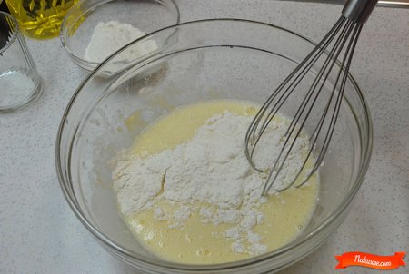 Частями прибавляя пытку замешиваем не густое тесто. Консистенция