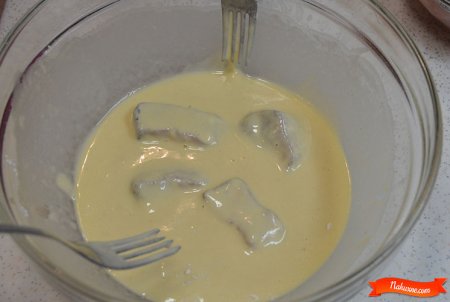 Кусочек рыбки обвалять в пытке, потом выслать в кляр, так