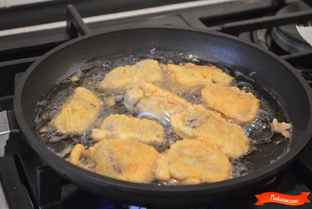 нагреть. Затем опустить рыбку в кляре, куски не обязаны дотрагиваться друг к другу.