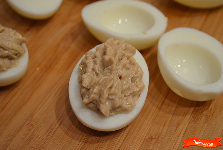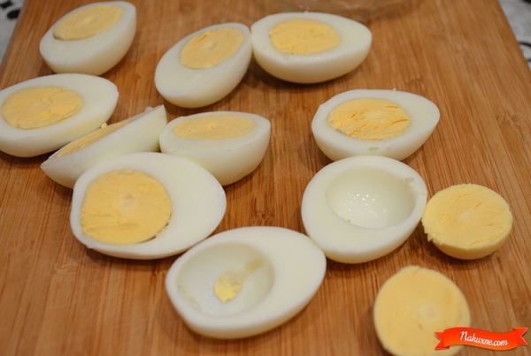 Приготовьте к новогоднему столу яичка фаршированные печенью