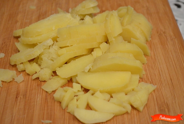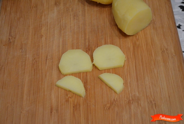 Нарезам картофель для ушек, глазок и в салат кубиком.