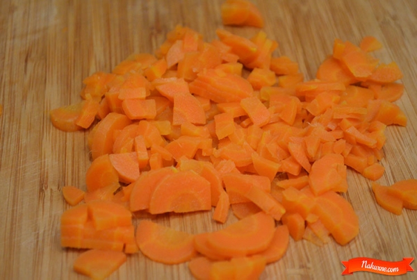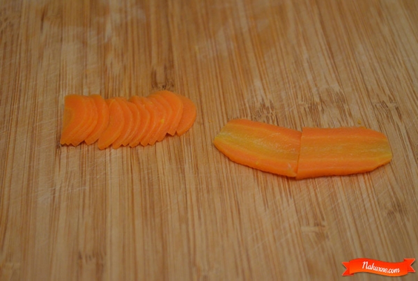 Нарезаем морковь для декорации ротик и чубчик, в салат