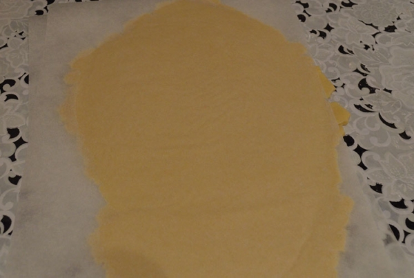 Раскатываем тесто меж 2-мя листами пергамента, толщиной