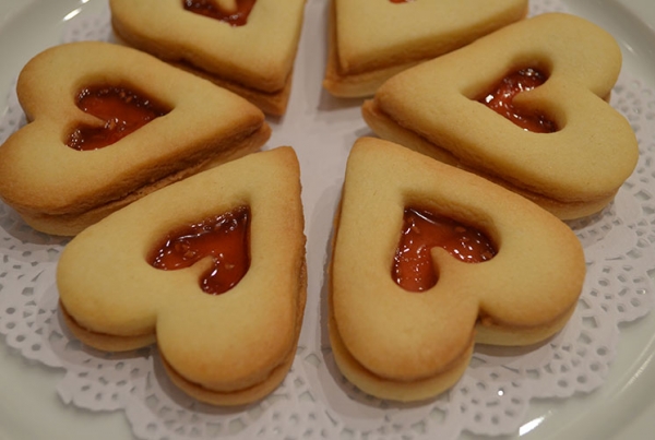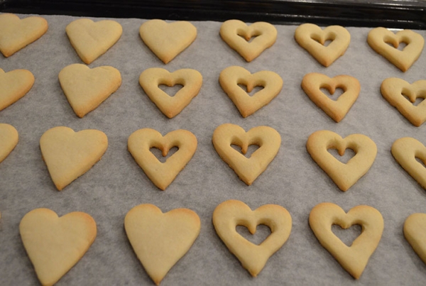 Напеките с вечера песочное печенье «Сердечки» и подайте к