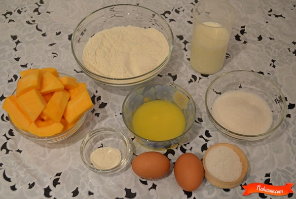 Отварить на пару в течении 20 минут тыкву. Измельчить блендером, остудить, отмерить 200 г.