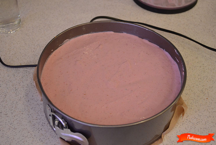 Заливаем остальной творожной массой, выпрямляем поверхность