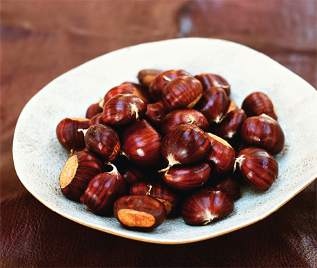 Сделать крестообразный надрез на скорлупе каштанов и крепко завернуть их по шесть штук в фольгу. Зарыть в горящие угли на 10 минут. Очистить и немедленно съесть.