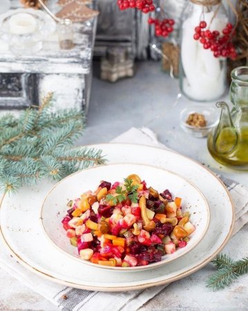 ВИНЕГРЕТГотовьте по любимому рецепту, но обязательно заправляйте душистым подсолнечным маслом и добавляйте маринованные опята.