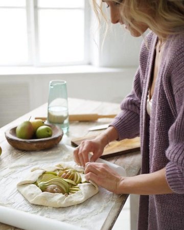 Ингредиенты:Корж:?Мука около 1,5 стаканов, часть можно заменить миндальным жмыхом?1 ч. л. корицы?1 ст. л. кокосового сахара?7 ст. л. (около 100 гр) сильно охлаждённого тёртого сливочного масла (если не едите, используйте кокосовое)?5-7 ст. л. ледяной воды?Начинка:?3-4 небольших плотных груши?1/3 чашки клюквы (по желанию)?3 ст. л. кокосового сахара?1 ч. л. корицы?Мускатный орех на кончике ножа?Сок половинки лимона?1 ст. л. кукурузного крахмала?2 ст. л. раскрошенного пекана (не повредит, но можно и без)?Дополнительно:?молоко для смазывания теста?сахарная пудра для украшения