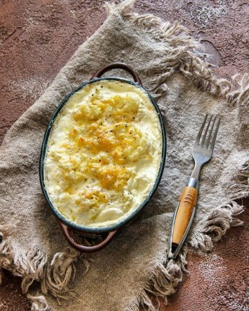 Ингредиенты:Цветная капуста 1 средний кочанСливки от 20% 200-300 млСольЧерный молотый перецСыр 150 грЧеснок 2-3 зубчикаСливочное масло 1/2 ст.л.