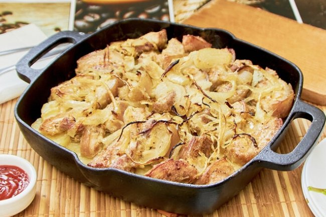 Картофель с грудинкой и луком в духовке - «Блюда из мяса»