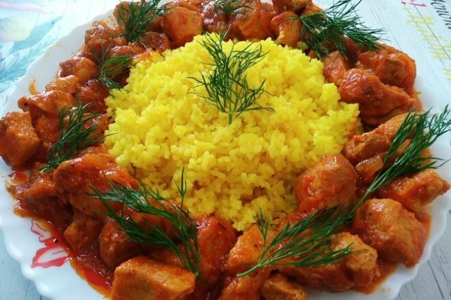 Свинина тушеная в томатном соусе с рисом - «Блюда из мяса»