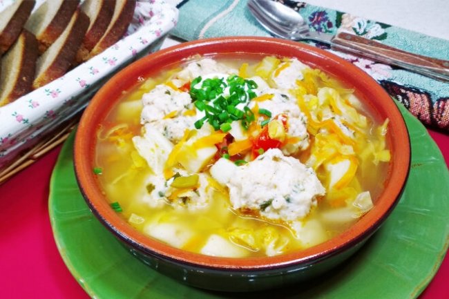 Щи из свежей капусты с картофелем и куриными клецками - «Первое блюдо»