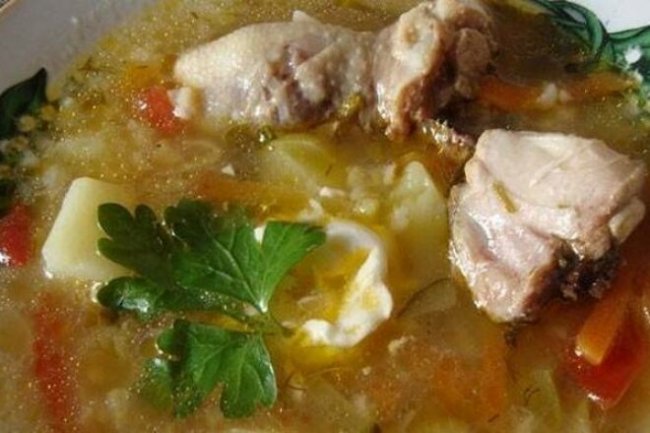 Рассольник с копченой курицей и колбасой - «Первое блюдо»