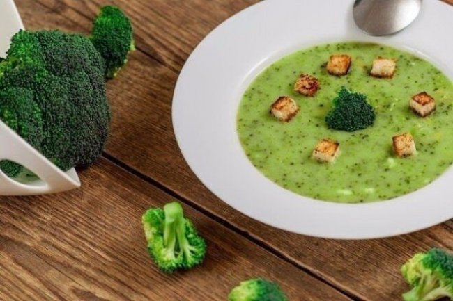 Суп-пюре из брокколи с кешью и гренками - «Первое блюдо»