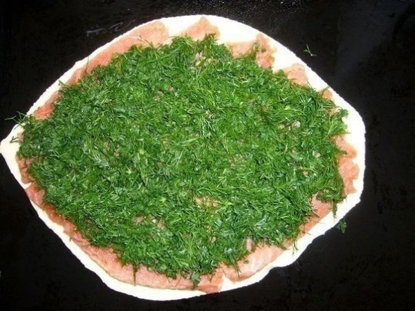 Закрыть рыбу слоем мелко нарезанного укропа.