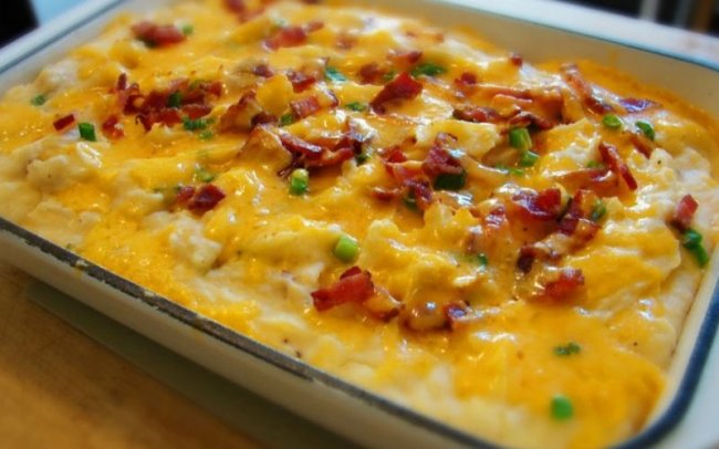 – картофель, яйца, картофель, колбаса с луком и сметаной, картофель.
