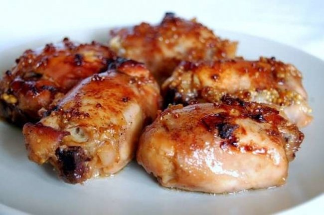 Через полтора часа ставим форму, накрытую фольгой в духовку на 180 градусов на полчаса, после чего фольгу снимаем и оставляем еще на полчаса, постоянно поливая кусочки курицы маринадом.
