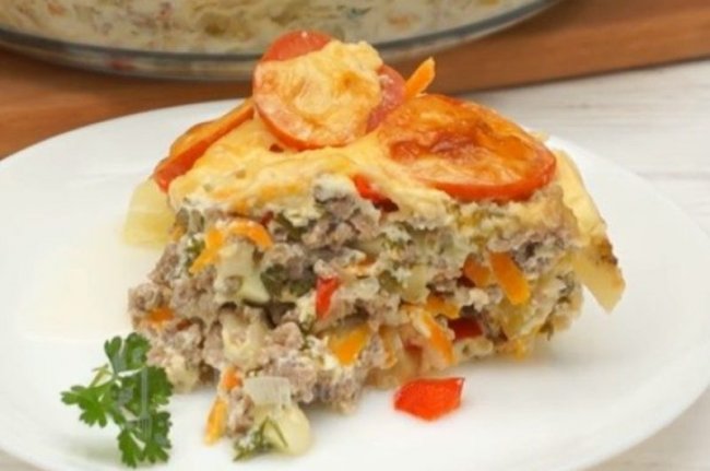 Форму для запекания смазываем растительным маслом и перекладываем в нее подготовленные овощи с фаршем.