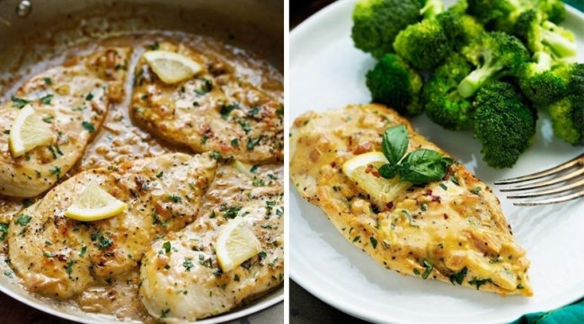 6. Поместите сковороду обратно на плиту всего на 30 секунд, не позволяйте соусу закипеть. Опустите курицу в соус и отправьте на 10 минут в духовку, разогретую до 180 °С.