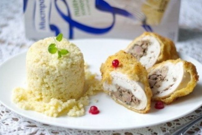 Шаг 15. Получается очень вкусная грудка фаршированная куриной печенью.