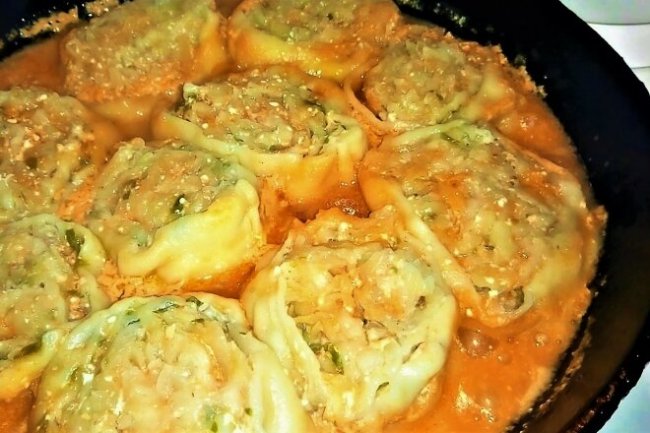 Тушеные рулетики из теста с картошкой и фаршем - «Второе блюдо»