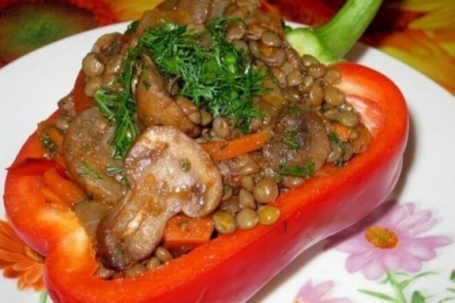 Зеленая чечевица с грибами и соусом ткемали - «Второе блюдо»