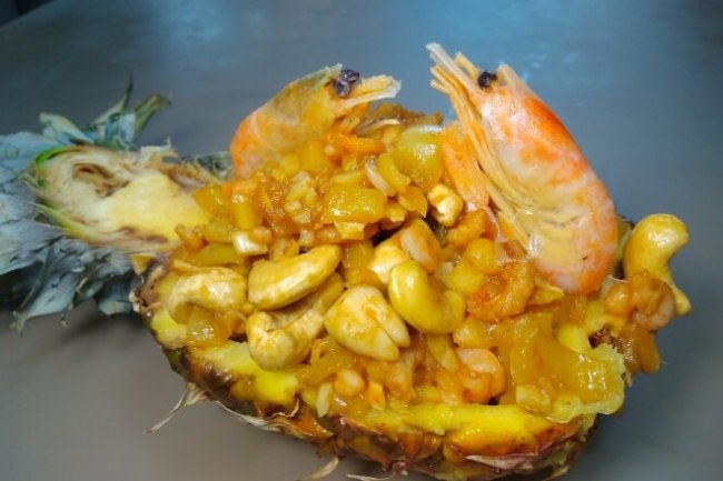 Жареные креветки с перцем и чесноком в ананасе - «Второе блюдо»