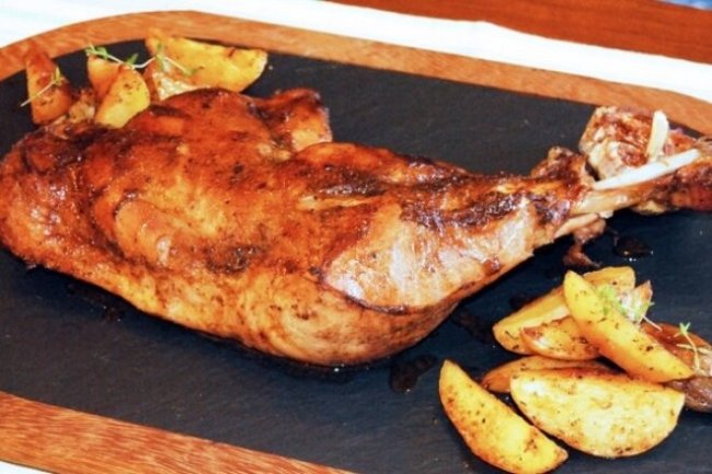 1. Осторожно снять с голени кожу, используя нож. Прорезать пленку с голени, пока не дойдет до кости. Протыкать ножки, чтобы впиталось предварительно приготовленное ароматное масло. Приготовить его следующим образом: положить в сливочное масло соль, перцы, прессованный чеснок, добавить оливковое или растительное масло.