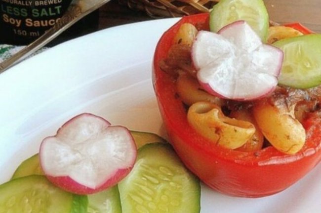 Перец фаршированный грибами с макаронами - «Второе блюдо»