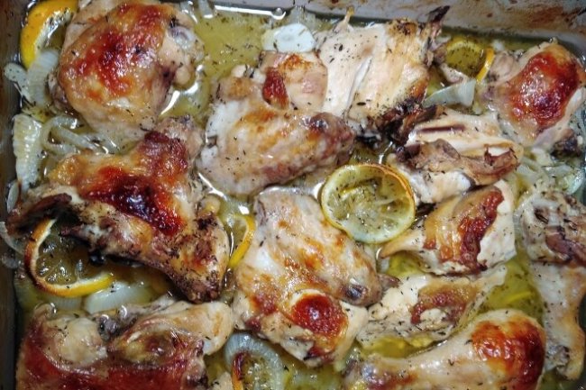 Курица запеченная с лимонами, тимьяном и белым вином - «Второе блюдо»