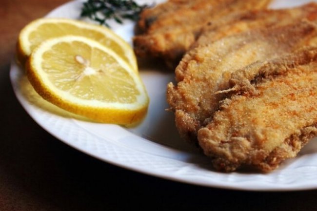 Налить масло на сковороду, прогреть. Обвалять рыбу в муке, обжаривать на среднем огне с двух сторон до румянца.